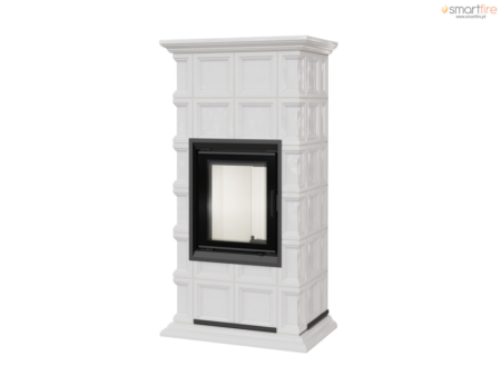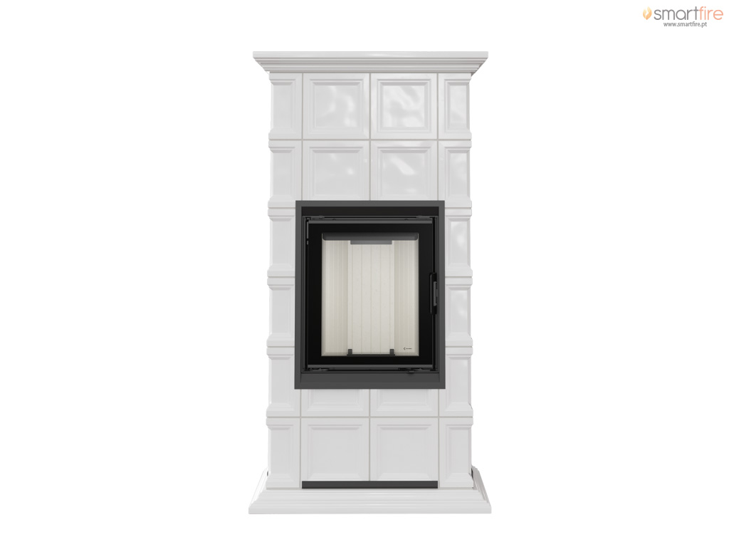 - DESIGN MODERNO A lareira Nadia é revestida com um azulejo de estilo retro que se encaixa perfeitamente no interior estilizado. Ao mesmo tempo, graças a uma estrutura geométrica simples, também vai encontrar-se nos espaços modernos. Com seu design único, os ladrilhos brilhantes de grande formato remetem à moda antiga. O invólucro aumenta o tempo de transferência de calor, que é uma fonte adicional de calor depois que o fogo se apaga.