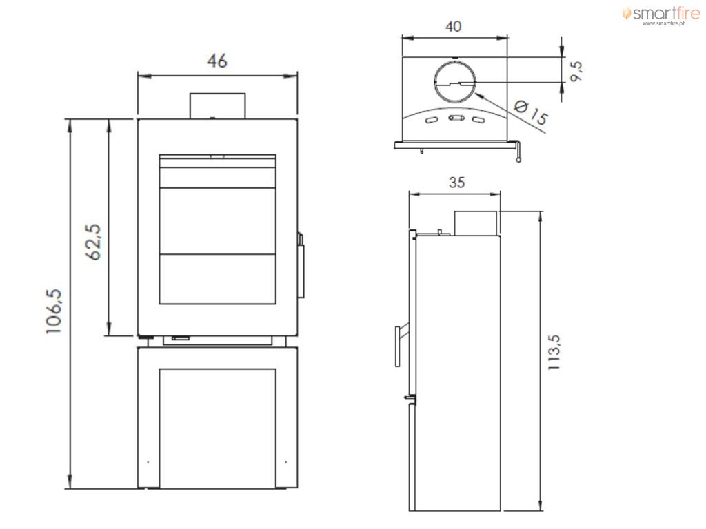 Os equipamentos de e acessórios para aquecimento de madeira e pellets devem ser instalados de acordo o manual de instruções do fabricante e de acordo com as normas vigentes. A sua instalação deve ser realizada por um profissional sob pena de perda das garantias e exclusão da nossa cobertura de responsabilidade.