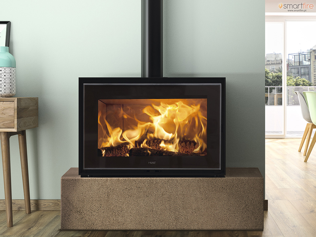 Salamandra a lenha num estilo moderno e conforme as normas de Ecodesign.