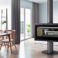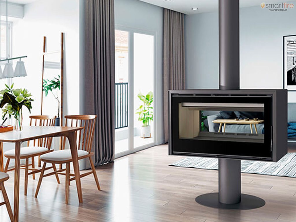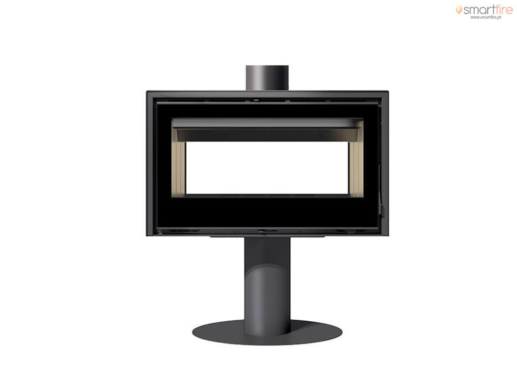 A Salamandra a lenha com ventilação RI-100 da Carbel, Destaca-se por ser de Dupla Face. Existe em 2 medidas: 80 e 100. Pode ser instalada de 2 formas: de Pousar ou com Pé.