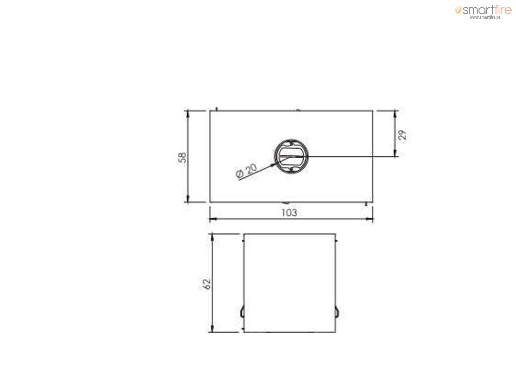 > Frontal em vidro que cobre a localização da gaveta de cinzas e dos ventiladores