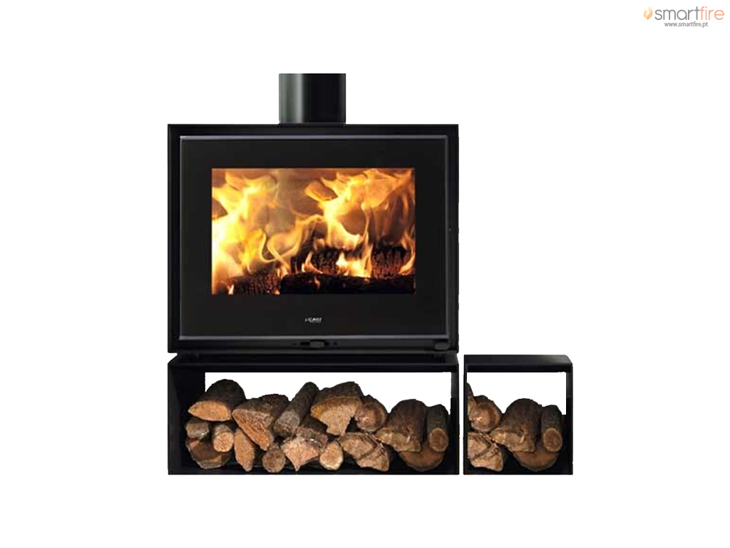 Salamandra a lenha num estilo moderno e conforme as normas de Ecodesign.