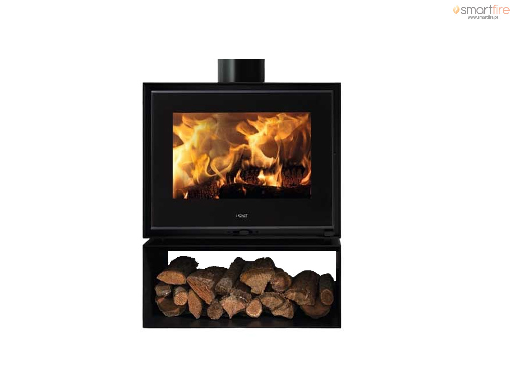 Salamandra a lenha num estilo moderno e conforme as normas de Ecodesign.