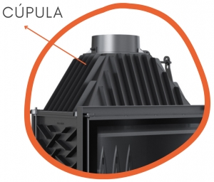 Recuperadores foyers – Destinam-se a lareiras que vão ser construídas. Na maioria das vezes são colocados em lareiras em pladur e podem ter uma base ajustável em altura. Fazem aquecimento por irradiação , ou seja, têm uma área com alhetas para fazer uma melhor permutação do calor. A cúpula aumenta a área de permuta para além das alhetas.