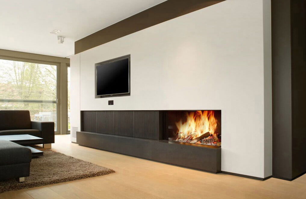 Charme: ainda pode ter o brilho intenso e o crepitar íntimo de uma lareira tradicional com um Recuperador de Calor. Também se abre um mundo totalmente novo de possibilidades de decoração, com várias formas, visões de fogo laterais e dupla face, vidros serigrafados e muito mais.